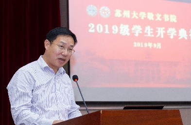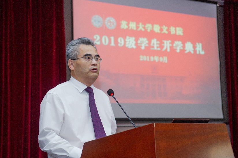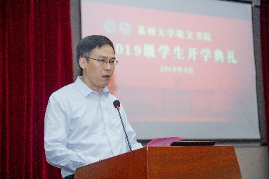 9月11日上午,苏州大学敬文书院2019级新生开学典礼暨导师表彰与聘任仪式在校本部红楼学术报告厅隆重举行。苏州大学党委书记江涌教授,朱敬文教育基金会原大陆总代表、苏州大学原校长陈克潜教授,朱敬文教育基金会大陆总代表赵阳书记出席。校党委常委、宣传部部长陈晓强,校党委常委、党办主任薛辉,校各有关职能部门负责人肖甫青、胡新华、茅海燕、孙庆民、钱万里、陈美、靳葛、资虹、顾建忠,各专业学院负责人刘志明、周国华、张影、逢成华、高雷、孙德芬、陈建军、晏成林、杨礼富、徐群祥、杨清、董娜、王振华、胡海峰、蒋青芳、顾振华、谢燕兰、许宜申、龚呈卉、沈云彩、黄远丰、李伟文等,也应邀出席。敬文书院院长钱振明教授、书院全体导师和2019级新生,共170余人参加了开学典礼。典礼由敬文书院党委副书记、副院长孟玲玲主持。