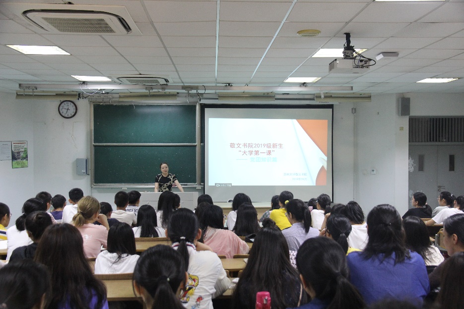 2019年9月12日晚,敬文书院党委副书记、副院长孟玲玲老师在苏州大学校本部理工楼103室为2019级的同学们上了一堂意义深刻的开学第一课。