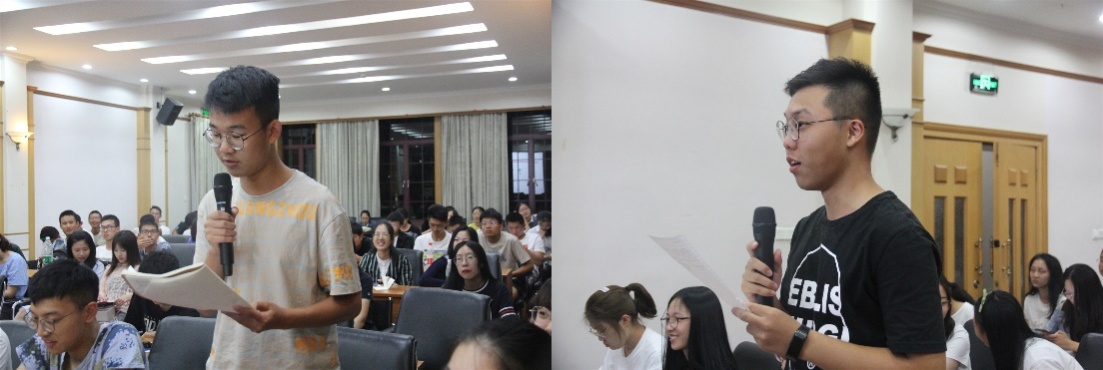 钱院长的报告引起了在场同学们的共鸣。2019级金融学专业的邹忆琦对院长的报告进行深刻思考,提出了“青年人要奋斗,中年人和老年人是否也要为实现人生理想和民族复兴而奋斗”的问题。钱院长从“每个人每个阶段都有不同的奋斗目标”这一角度发表自己的见解,并表示青年人未来的路很长,更需奋斗。