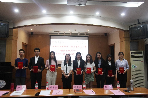 接下来,苏州大学团委副书记徐美华老师、敬文书院学生事务中心主任黄冠平老师为院级优秀暑期社会实践团队及先进个人获奖学生代表颁发荣誉证书并合影留念。
