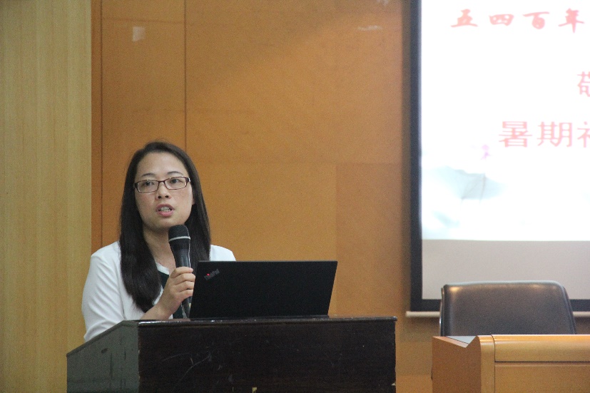 最后,徐美华老师为本次汇报会做了总结讲话。她表达了对敬文学子利用暑期实践机会前往世界各地高等学府和深入社会考察、学习的赞扬,并肯定了敬文学子在主动实践中受教育、长才干、做贡献的精神。此外她还强调了暑期社会实践活动的重要性和必要性,并号召同学们通过参与实践活动做到“家事国事天下事,事事关心”,由此锻炼自己的综合能力,体验人生百态,突破由学校通往社会的屏障。