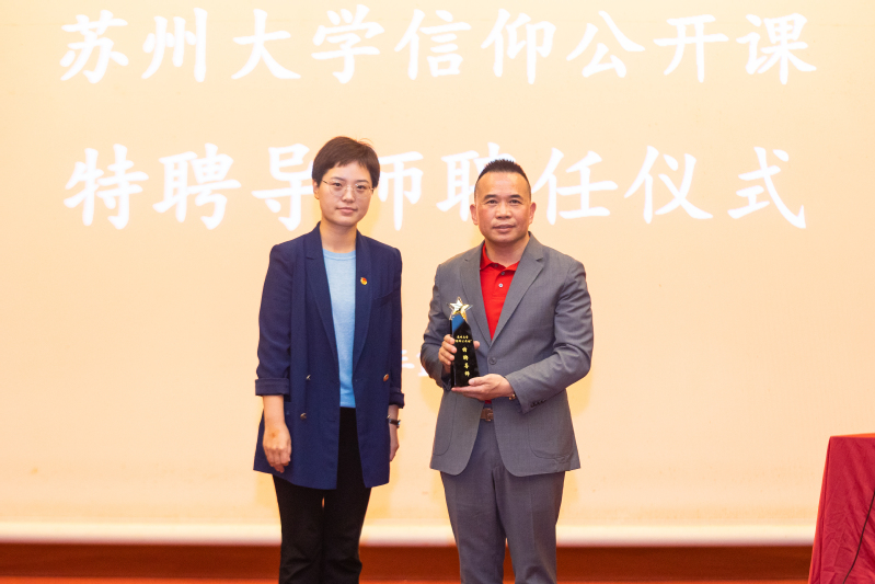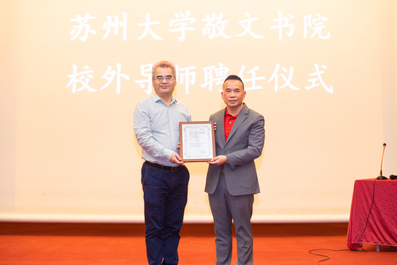 活动结束后,现场举行了导师聘任仪式。校团委书记于潜驰为周荣先生颁发苏州大学“信仰公开课”特聘导师聘书。敬文书院院长钱振明为周荣先生颁发苏州大学敬文书院校外导师聘书。
