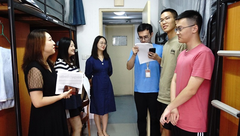 “今天天气很热,大家辛苦了!”上午10时,校党委常委、总会计师周高,校团委书记于潜驰,校基本建设处处长顾建忠,来到东校区敬文书院迎新点,看望慰问参加迎新工作的志愿者们,对大家的辛苦付出表示感谢。