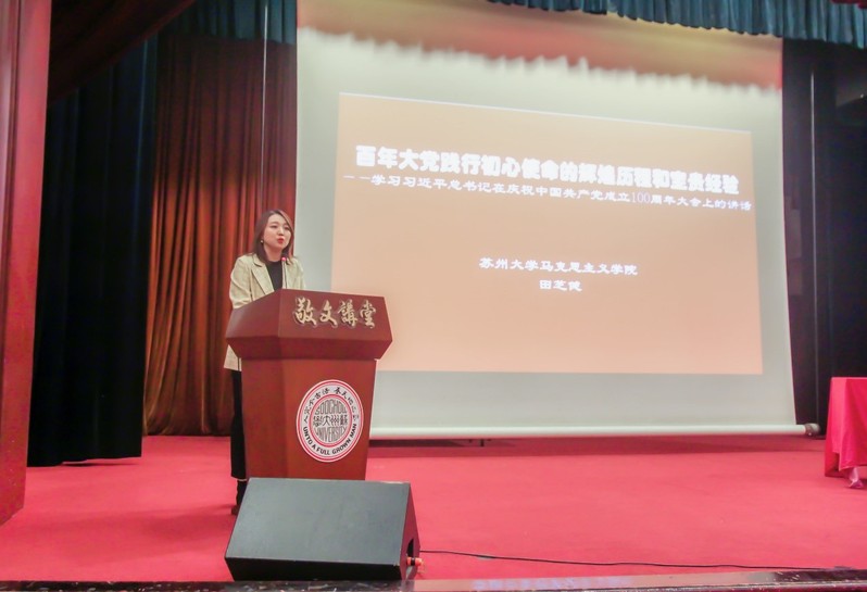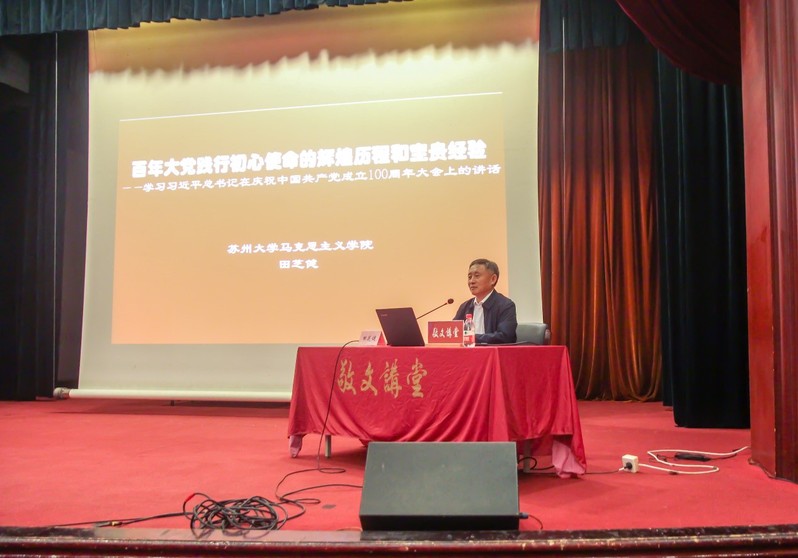 2021年10月20日下午,敬文讲堂第192讲暨敬文书院、能源学院分党校第六十六期党的基本知识培训班暨第四十五期预备党员培训班第一次集中授课在校本部敬贤堂举行。特邀苏州大学马克思主义学院院长田芝健教授主讲题为《百年大党践行初心使命的辉煌历程和宝贵经验》的专题讲座。2021年苏州大学“惠寒”第二十四届研支团成员,敬文讲堂课程学员,敬文书院、能源学院分党校第六十六期党的基本知识培训班暨第四十五期预备党员培训班学员参加讲座。本次讲座由敬文书院党委副书记、副院长孟玲玲主持。
