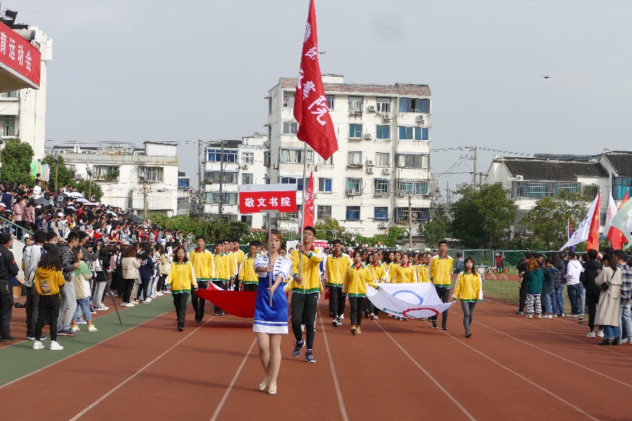入场式上,敬文学子们神采奕奕,步伐矫健。 “志比天高,气比山昂。敬文书院,勇争第一” ,坚定嘹亮的口号响彻云霄。这不仅彰显了敬文书院全体师生对此次运动会的高度重视和积极投入,还体现着他们始终牢记着身为敬文人的目标和使命。