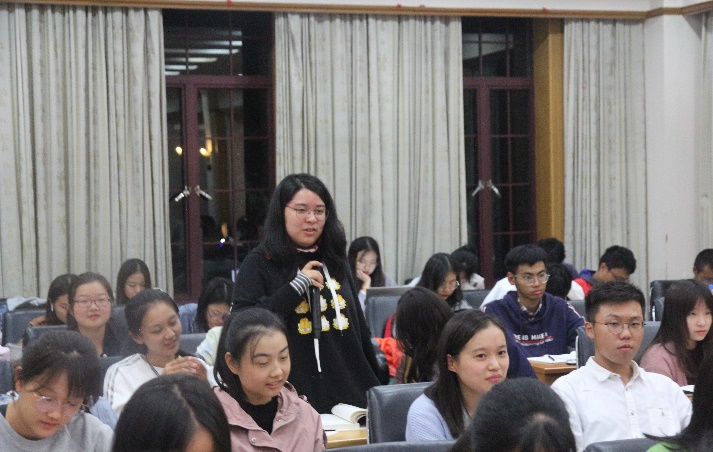 临近讲座结束,叶正亭先生与同学们进行了亲切的交流互动。同学们踊跃提问,针对“如何更好传承苏州古文化”“苏州方言的内涵”等问题积极发言,叶正亭先生一一耐心给予了解答。