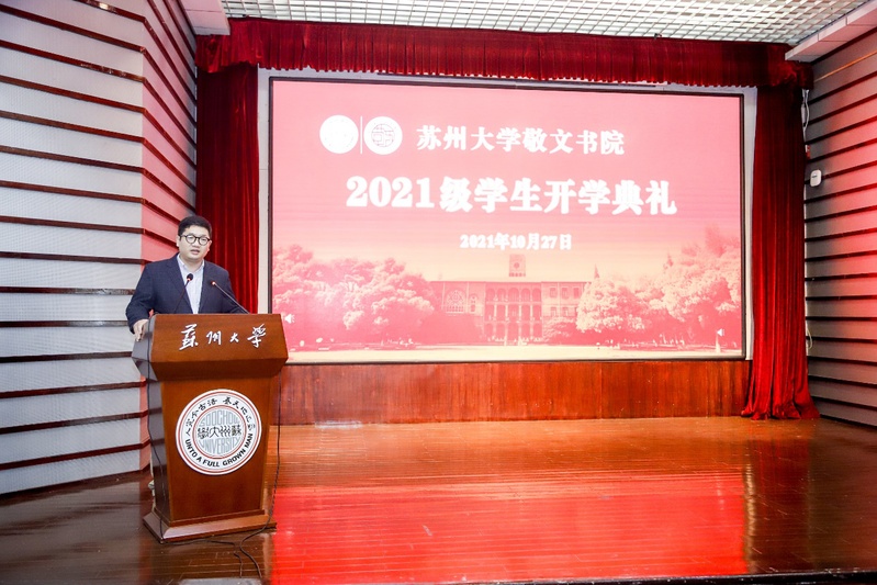 金秋十月,万物竞熟。2021年10月27日下午,苏州大学敬文书院2021级学生开学典礼在校本部红楼学术报告厅举行。苏州大学党委副书记王鲁沛,校有关部门负责人方亮、于潜驰、卜谦祥、尹婷婷、黄文军、靳葛、陈平、陈晓刚、汪卫东、陈伊欢;各专业学院负责人逢成华、沙丹丹、杨礼富、沈纲祥、朱苏静、蒋青芳、谢燕兰、杭志宏、许宜申、黄冠平、沈云彩、陈小平、黄远丰等出席了本次典礼。敬文书院2021年新聘校外导师申宏建、王池良、徐菁、徐炜政等也应邀出席。敬文书院院长钱振明教授、各相关专业学院的导师和新生辅导员、书院全体常任导师和2021级新生参加了开学典礼。仪式由敬文书院党委副书记、副院长孟玲玲主持。