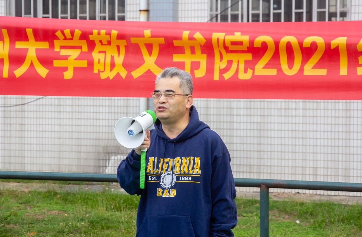 迎着朝阳,身穿红色院服的2021级新生在操场集合。首先,敬文书院院长钱振明教授致辞,他提出“晨跑是为了克服冬天的坏处,享受冬天的好处,让同学们在冬天玩得开心,学得更好,增强体质,精神面貌更佳”指明了晨跑大赛的目的和意义。