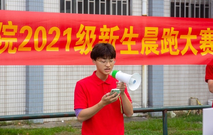 接着,敬文书院健康中心的学生代表朱宣杭介绍了本次比赛规则,比赛采取积分制,根据综合里程数和打卡次数评选出书院晨跑大赛先进个人。至善班文体委员施屹然同学代表21级新生发言,他感谢晨跑大赛,驱散了清晨的困倦,开启美好的一天,并号召全体敬文同学,每天迎着清晨的阳光,坚定地在逐梦的道路上奔跑。