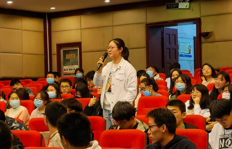 讲座结束后的提问环节,崔璨等3位同学分别就有些特定的数学命题的验证是否有证明的必要、如何培养数学思想、如何将专业知识应用于实践、正确对待数学的方法是什么、如何看待基础科学人才现状等问题与张影教授展开讨论,张教授也运用自己的专业知识与经历一一具体地进行了解答。
