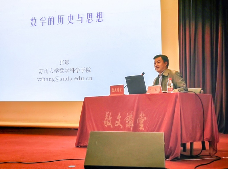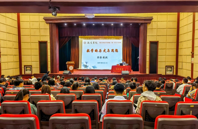 2021年11月3日下午,敬文讲堂第194讲在校本部敬贤堂举行。本次讲堂特邀苏州大学数学科学学院院长教授张影,主讲题为《数学的历史与思想》的专题讲座。讲座由敬文书院院长钱振明教授主持。