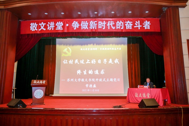 2021年11日10日下午,常熟市蒋巷村党委第一书记常德盛应邀做客敬文讲堂,主讲《让村民过上好日子是我终身的追求》,勉励青年学生争做新时代的奋斗者。