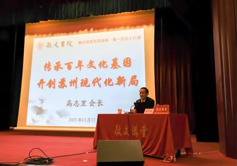 2021年11月17日下午,苏州市中共党史学会会长、苏州市人大智库专家高志罡先生应邀做客敬文讲堂,主讲题为《传承百年文化基因,开创苏州现代化新局》的专题讲座。讲座由敬文书院院长钱振明教授主持。