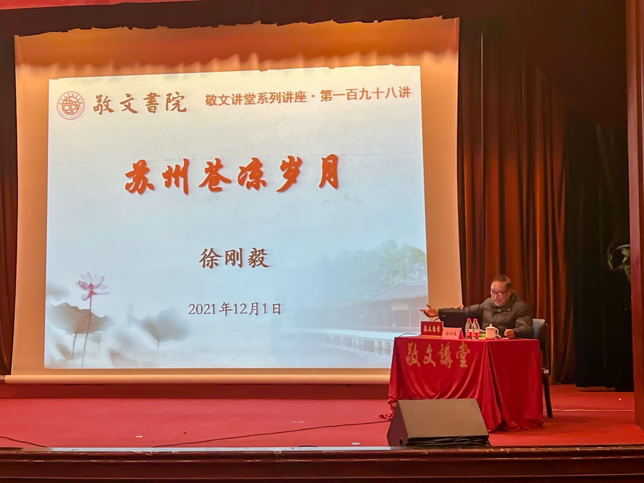 2021年12月1日下午,敬文讲堂第198讲在校本部敬贤堂举行。本次讲堂特邀苏州历史文化学者、苏州古城保护工作者徐刚毅先生,主讲题为《苏州苍凉岁月》的专题讲座。讲座由敬文书院院长钱振明教授主持。