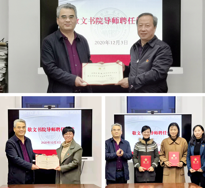 为了进一步拓展机关党员参与思想政治教育、服务学生成长成才的有效路径,敬文书院特聘任机关党支部党委办公室党支部书记薛辉,支部副书记袁冬梅,以及支部党员张雯、卢昕婵、华乐担任学生发展指导教师。钱振明院长为各位指导教师颁发了聘书。
