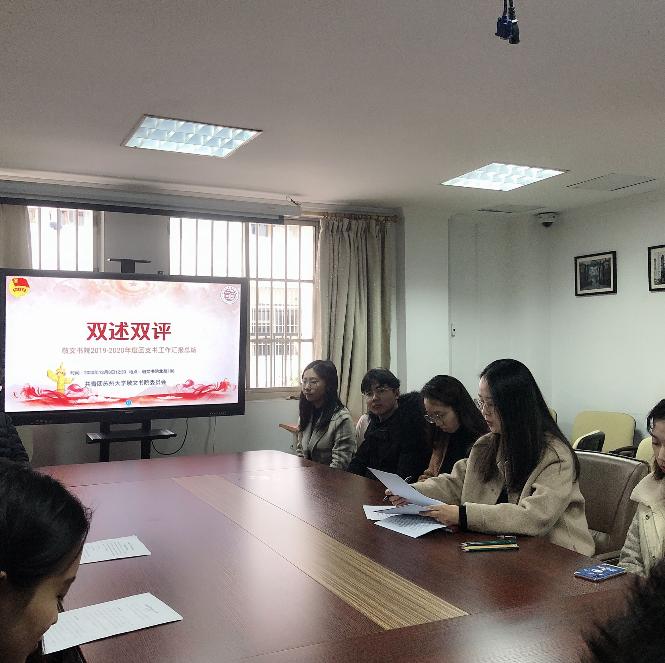 2020年12月9日中午,苏州大学敬文书院2020年度团支书双述双评大会在北苑108会议室举行。敬文书院常任导师周彤老师、敬文书院分团校秘书长王凌翔,以及敬文书院2017-2020级各班团支书参加了此次会议。