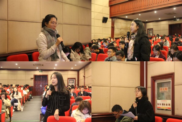 讲座的第二阶段,王鹤菲教授与同学们分享了她在海外求学、工作的经历以及其对中美高等教育的理解,激励同学们迈向更高的学习目标。