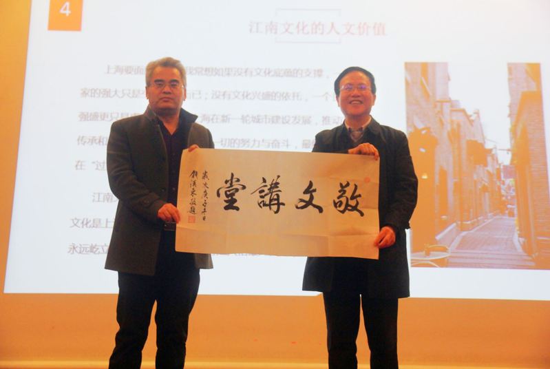 最后,钱汉东老师还为敬文书院题写了“敬文讲堂”坛名。