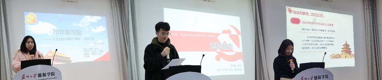首先,敬文书院分党校第十一届学生工作组织理事长鲁亚威同学就组织概况、工作内容、未来展望进行述职,并提出在未来同学们要认真学习习近平新时代中国特色社会主义思想,学思践悟,知行合一,为实现中华民族伟大复兴贡献力量。