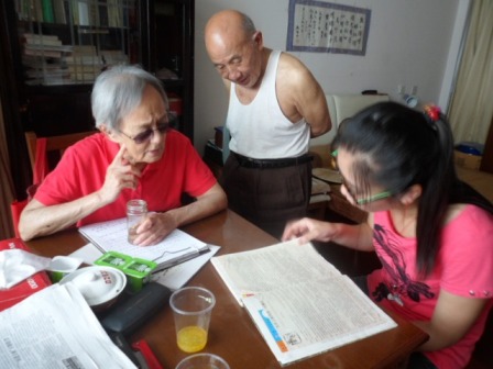 这次,一位双目失明的老人给团队的成员们留下了深刻的印象,这位老人身有残疾,却仍对生活充满希望。老人名叫端木青霞,与她的老伴一同住在敬老院中。据她讲述,在她双目失明之后,曾一度落魄,觉得整个人生失去了意义、失去了希望。但是,经过不断的思考最终能够直面人生惨淡,拿起了笔,写下了自己的感受和对未来的希望。她写过的一篇题为《心地光明》的文章,曾在