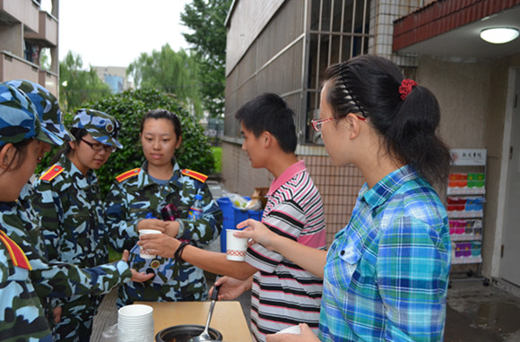 下午军训刚结束,关爱中心干事在书院门口向新生们递上一杯杯热气腾腾的姜汤。当军训的新生疲倦的走进书院大门时,看到学长学姐为大家送上姜汤,疲惫的脸上洋溢着欣喜,端着暖暖的姜汤,每一个人都感到了温暖。尽管天气阴冷阴雨绵绵,但是在敬文学子的心中,却感受到了阳光般的温暖。
