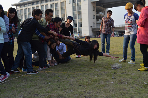最后的压轴戏,当属“万里长城永不倒”。大家围成一圈,前一位同学坐在后一位同学的腿上,以此类推。做这个游戏时,不仅需要给予后面同学充分的信任,相信他们会给我们贡献出他们的大腿,还要考虑到前面同学是否能坐到自己的大腿上。如果这个环节做好了,双方都会感到十分舒适。反之,效果完全相反。简单的游戏映射出深邃的人生哲理:赠人玫瑰,手留余香。