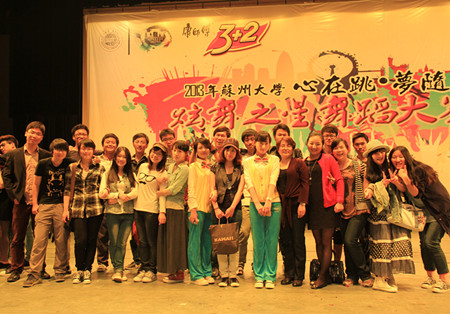 5月11日下午,由党委宣传部、学生工作部(处)、团委主办,校学生会承办的“心在跳,梦随行”2013年苏州大学炫舞之星舞蹈大赛在独墅湖影剧院隆重举行。来自全校各学院(部)的22支参赛队伍参加了比赛。