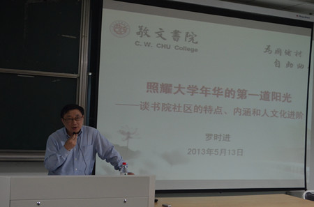 2013年5月13日晚,敬文书院全体学生大会在理工楼103召开,敬文书院院长罗时进、副院长王剑敏,常任导师、助理导师以及2011级、2012级全体同学参加了会议。大会由王剑敏副院长主持。