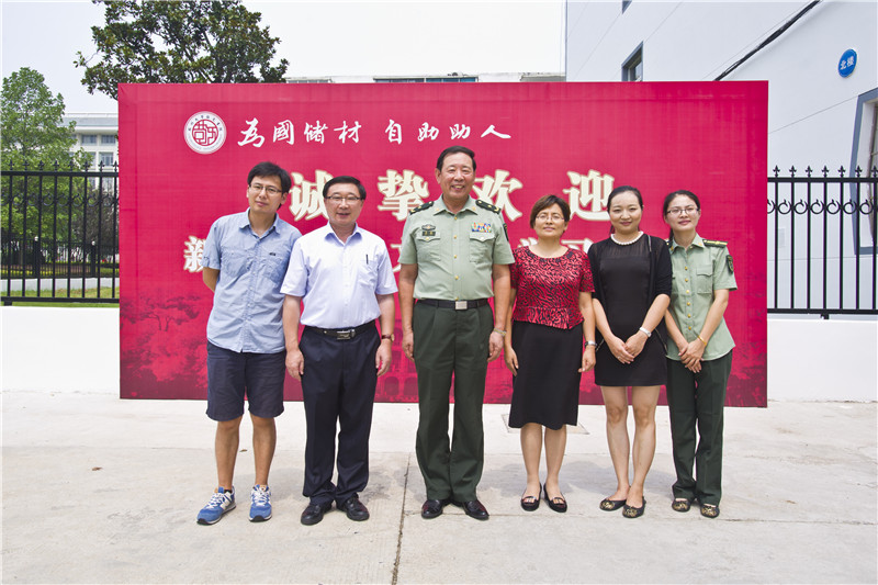 来到敬文书院门前,罗援将军与陪同领导及书院老师亲切合影。看到在书院门外操场积极参加军训的同学们,罗援将军非常高兴,在军训休息之时与同学们亲切交谈,并与大家合影留念。罗援将军鼓励同学们好好锻炼身体素质,争取早日成为国家栋梁。这时,一些刚下课的同学回到书院,见到罗援将军,也兴奋地加入了“合影”队伍。