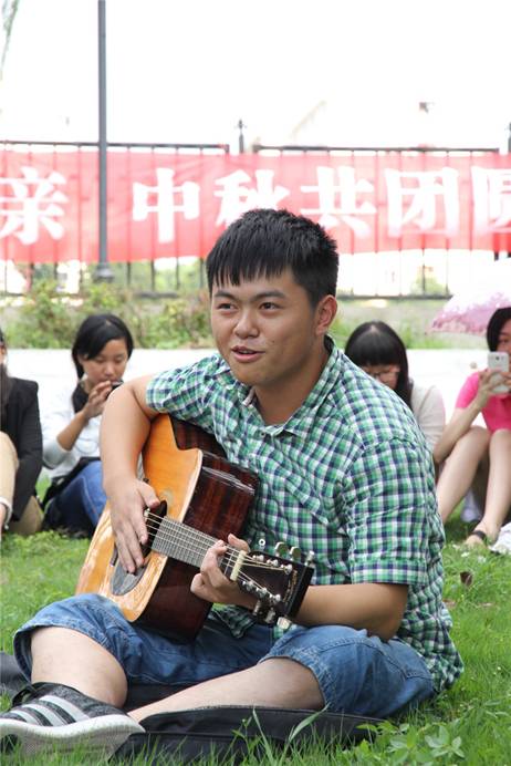 罗院长致辞后,活动正式开始。书院2013级新生丁天同学向大家献上了一曲吉他弹唱《董小姐》来祝愿同学们中秋快乐,悠扬而舒缓的曲调在草坪上回荡,获得了同学们热烈的掌声。