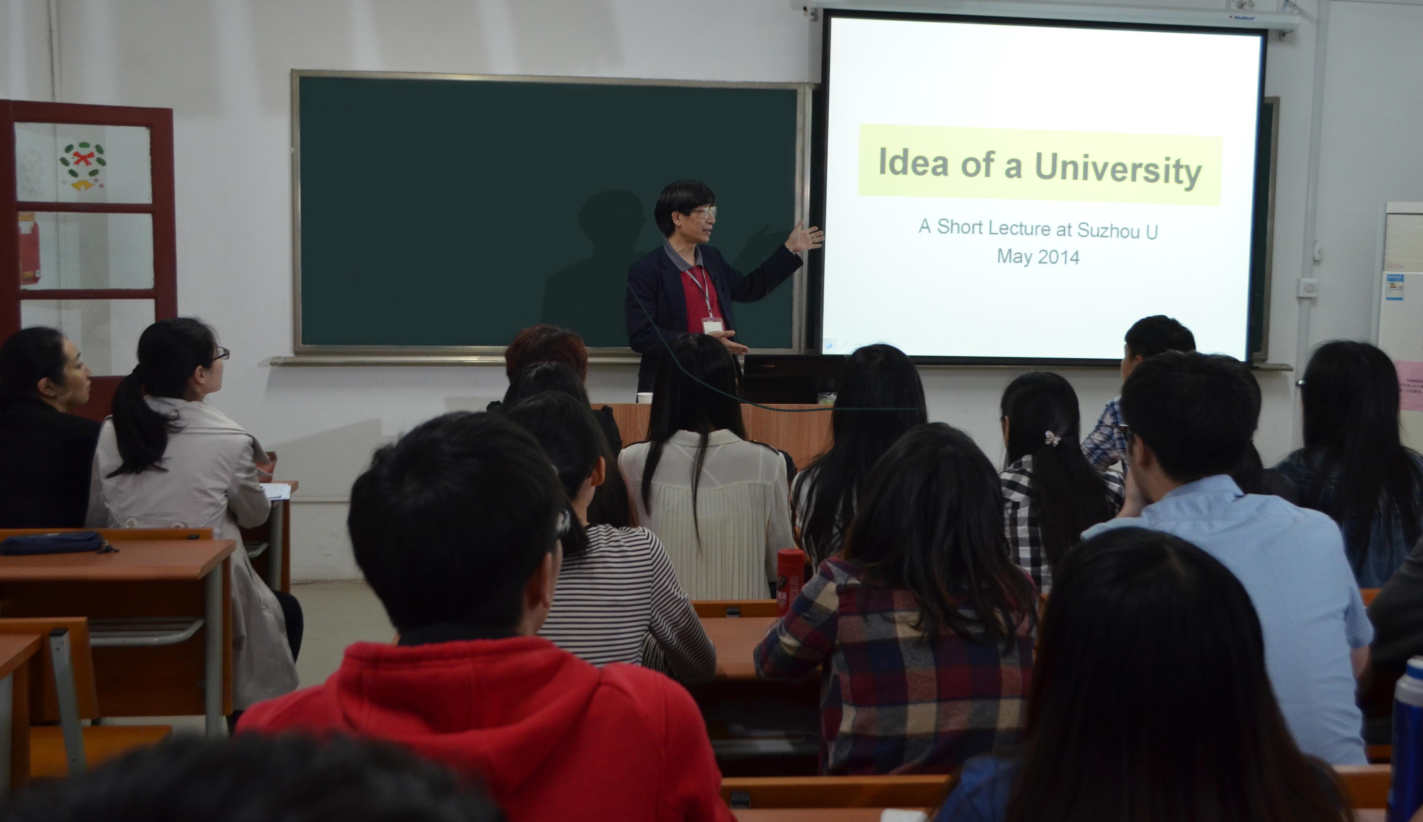 杨纲凯教授首先由英文中“大学”的前缀“Uni”启发同学进行思考,并追溯了大学的起源。他引用了古今中外大量生动丰富的例子,解读了人类思想的进步与大学发展之间的关系,启发同学们辩证地看待大学通识教育与职业教育、精英教育与普及教育、教学与研究之间的关系。他还重点介绍了香港中文大学的通识教育课程之一《与人文对话》的教学内容、教学方法与评价方式。港中大全人教育的理念,学校对通识教育的重视,以及同学们深厚的经典文化的学养令人极为钦羡。