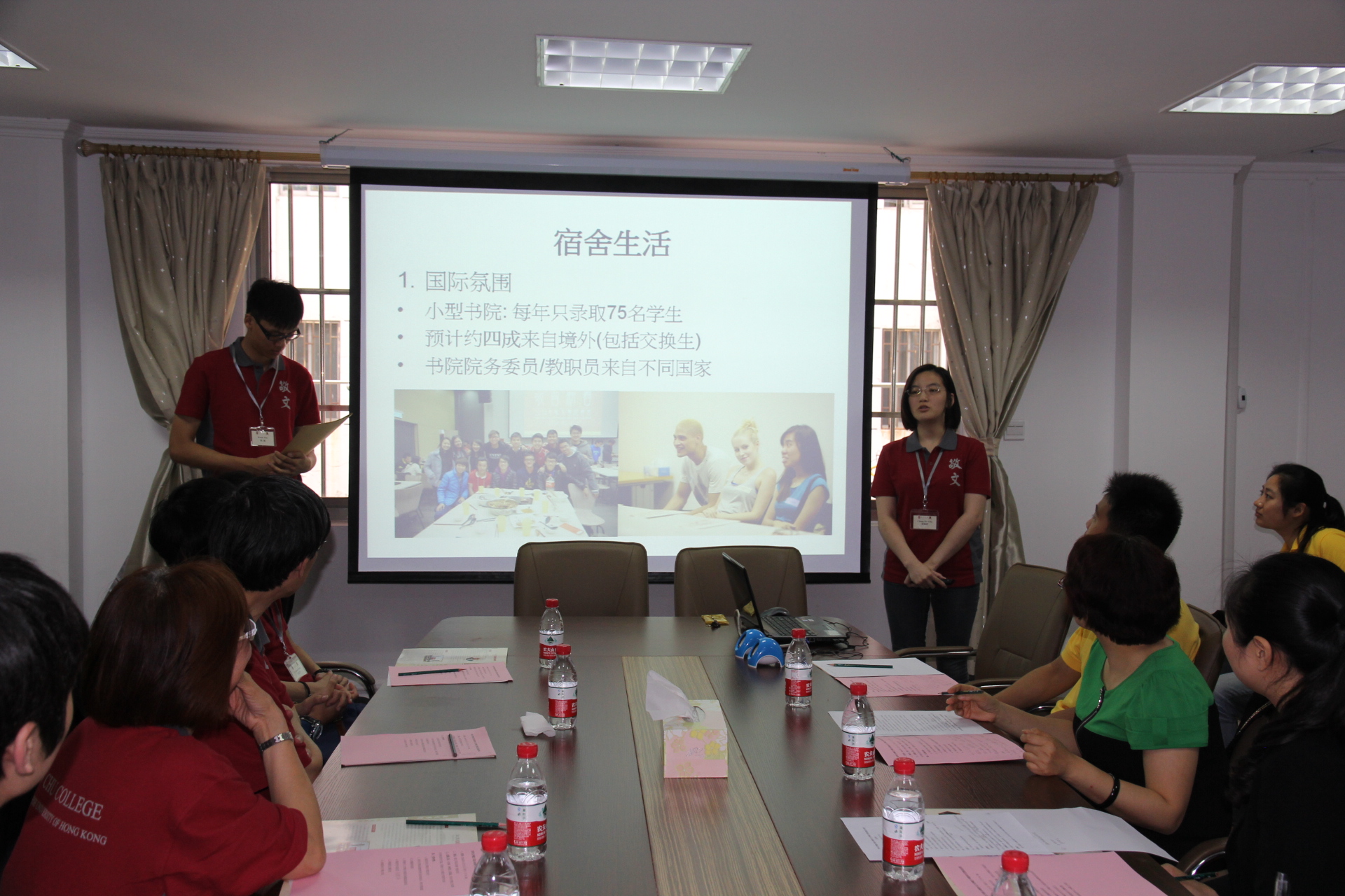 在交流会上,港中大敬文书院的两名学生代表展示了其书院内部的特色活动与运行制度。苏大敬文书院的学生代表也对书院的SCL计划进行了介绍,并分享了自身在书院生活学习的体会。交流会最后,两院师生还互赠了纪念品以表达欢迎和谢意。