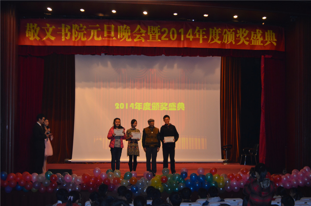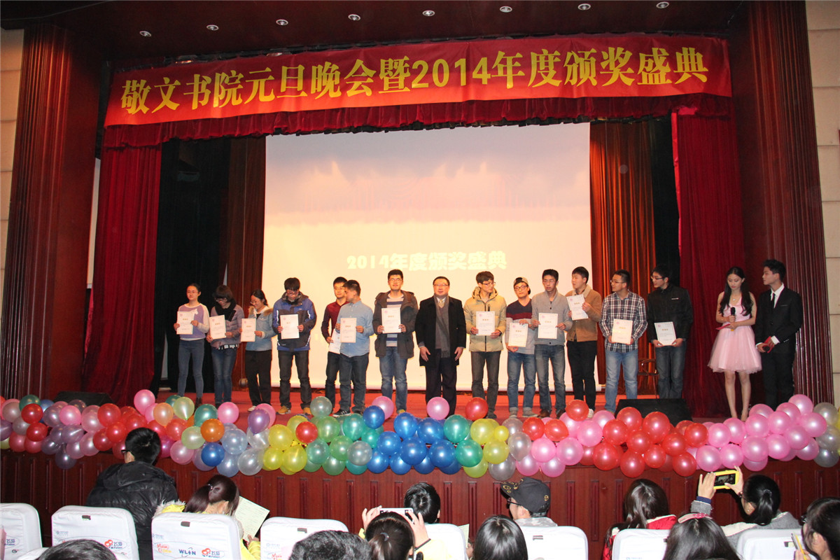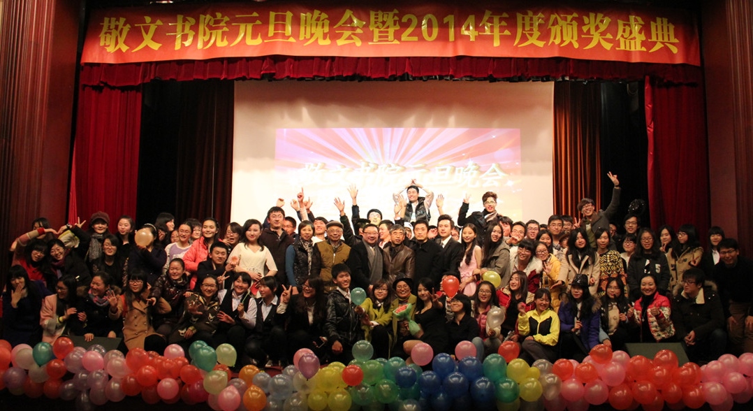 2014年12月29日晚六点半,敬文书院元旦晚会暨2014 年度颁奖盛典于苏州大学敬贤堂举行。书院全体师生济济一堂,在欢声笑语中喜迎元旦。敬文书院院长罗时进、副院长王剑敏以及书院学业导师代表、常任导师共同出席了本次盛会。