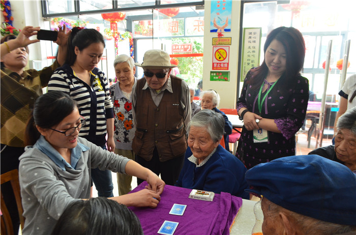 上午8:30,敬文学子到达观前敬老院。一入大门,学生们便受到了来自老人们的热情欢迎。爷爷奶奶们精神矍铄,满眼笑意,令在场学生倍感亲切与温暖。在短短一个上午的相处中,同学们为老人们表演节目、整理床铺,博得满堂喝彩与一致好评。歌曲演唱、乐器演奏、魔术表演等一系列丰富多彩的表演形式不仅展现了敬文学子多才多艺的人文素养,更体现出同学们对社会主义核心价值观的率先垂范、努力实行。值得一提的是,当在场观众都为精妙绝伦的魔术表演所叹服、震惊之时,一位年逾花甲的老爷爷以其惊人眼力“无情”揭秘,向我们展示了该魔术之玄妙所在。在同学们的一再邀请下,爷爷也小试牛刀,为大家带来了精彩的纸牌魔术。谈笑互动间,书院学子感受到了老人们身上所展现的智慧与活力,真可谓身已老而心未老,夕阳依旧无限好。