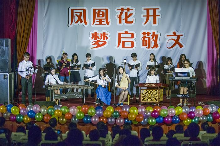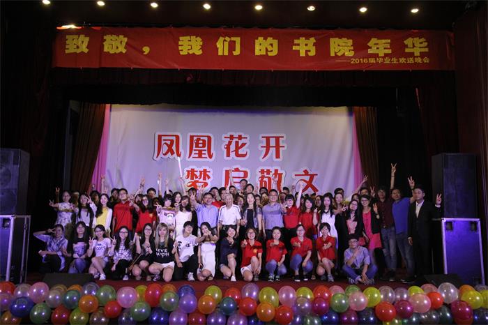 在晚会中,敬文学子们用歌声、舞蹈、视频、诗朗诵交织着呈现了2016届毕业生与书院的殷殷深情。小品《敬文书院新闻联播》取材于书院生活的点点滴滴,诙谐风趣的语言中我们细数昔日欢声笑语,带我们走进过去的时光。师生共唱的一曲《栀子花开》将浓浓的师生情洒满舞台的每个角落。罗时进院长为毕业生创作的诗歌――《凤凰花开的季节》将晚会推向了高潮,表演者动情的朗诵响彻在敬贤堂上空,打动了每个人的内心,更是道出了青春原有的模样:天诫我,初心不改,走进成熟,绝不世故顽劣,愿带一颗纯净的心,向未来,鸣笛启航!