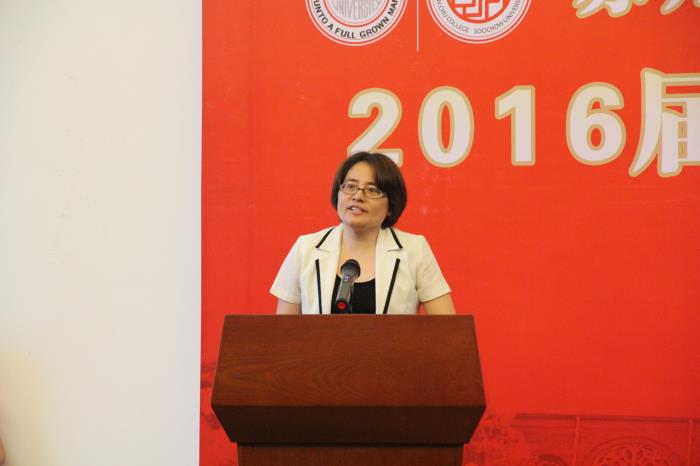 敬文书院院长罗时进教授首先致辞。他向全体2016届毕业生顺利毕业表示祝贺,为同学们的努力和成长而感到自豪,并由衷感谢书院导师的辛勤付出。罗院长简朴的话语如谈心一般:未来的路可能更加艰辛,同学们要有足够的思想准备,迎接困难、挫折和失败;要善于理解各种人,熟悉各种环境,解决各种麻烦,争取可能的成功;要保持青春的活力,保持思考的习惯、质疑的精神、独立的品格;要放开手脚、放飞梦想,不要局限自己,勇于选择未来。最后罗院长说:“无论你们四年的经历如何,感受如何,相信你们心中永远有敬文书院,敬文书院作为一个有精神、有灵魂的集体,心中也永远有你们!”