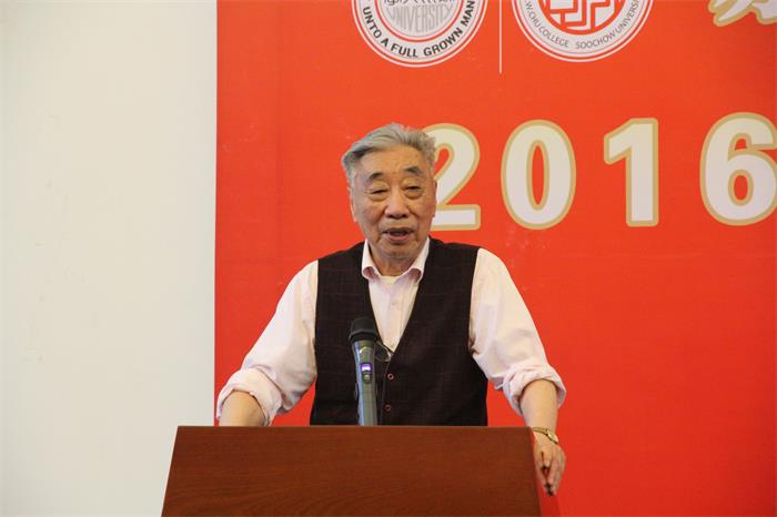 朱敬文教育基金会大陆总代表、原苏州大学校长陈克潜教授致辞。他回顾了朱敬文教育基金会结缘苏州大学的经过,道出了苏州大学创办敬文书院的初衷。诠释了“为国储材、自助助人”的敬文精神的内涵,并强调“为人之道,为学之方”这两句老话时至今日仍值得同学们深思。他希望毕业后的敬文学子们能明确人生方向,弘扬敬文精神,克服困难不断前进,为祖国做出更大贡献。