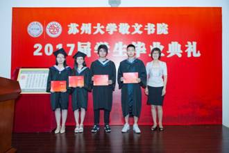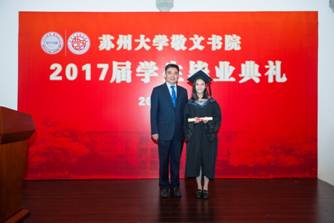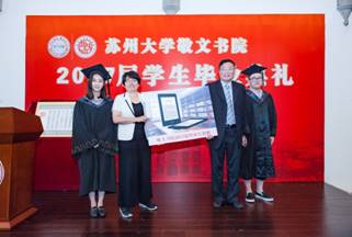 苏州大学教务部部长周毅宣读了荣誉学生名单。江作军副校长为每位荣誉学生颁发荣誉毕业证书并分别合影留念,记录下每位毕业生手握荣誉毕业证书的珍贵一刻。