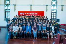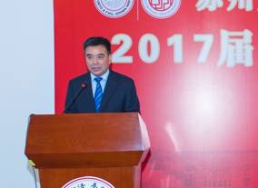 苏州大学党委副书记、副校长江作军教授致辞。他指出,敬文书院经过六年时间的探索与实践,无论是在育人理念、培养目标、导师制实施、社区管理,还是在通识教育与专业教育对接、新型师生关系构建以及研究型国际化人才培养特色等方面都建立了自己的品牌,赋予了书院全新的内涵。他同时表达了对于毕业生的三个祝愿:愿大家始终心向阳光、热忱真挚,用乐观和豁达展现“苏大人”和“敬文人”的精神;愿大家始终脚踏实地、追求卓越,用积极与进取展现“苏大人”和“敬文人”的品格;愿大家始终心怀感恩、勇于担当,用责任与踏实展现“苏大人”和“敬文人”的风采。