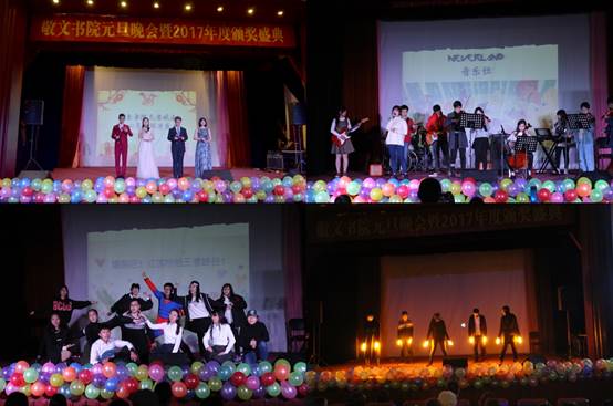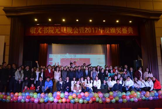 2017年12月22日晚,敬文书院元旦晚会暨2017年度颁奖盛典于校本部敬贤堂举行。敬文书院院长马卫中教授,书院学业导师宋为基、金琳老师,社区导师章壮老师,全体常任导师以及兄弟院系的学生会主席、全体敬文学子出席了晚会盛典。