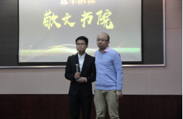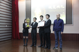 当晚,本部红楼学术报告厅校辩赛的决赛现场,由徐晟辉、谢铭�、陶睿杰、徐祺葳组成的敬文书院辩论队与反方文正学院就“改革开放是让中国更加‘中国化’还是‘世界化’”的问题展开了一番激烈的唇枪舌战。在比赛中,敬文书院一辩徐晟辉同学首先立论提出让中国更“中国化”指的是让中国更好地展现和发挥出中国自己的特色,并通过横向与纵向的比较结合中国国情的现状有力地论证了观点。二辩谢铭�和三辩陶睿杰思路清晰、反应敏捷,针对我国“一国两制”制度的属性、世界化与开放化的差异、“一带一路”对中国和世界的作用等问题和对方辩手进行激烈辩论,将本场比赛推向了高潮。最后,四辩徐祺葳总结陈词、升华主旨,指出改革开放不只是让中国与世界接轨,更重要的是让中国活出了自己的姿态。随后,评委们对比赛进行了点评,对双方选手都给予了高度的评价并对辩题进行了深入分析。最后,敬文书院以10:5的比分战胜了文正学院代表队,摘得桂冠,陶睿杰同学获得全场最佳辩手。这是我院参加历届校辩论赛夺得的首个冠军,沉甸甸的奖杯让在场每一位敬文学子为之振奋。