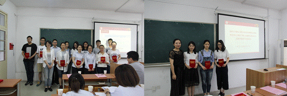 在各小组读书成果展示结束后,柯征老师、孟玲玲老师分别为本届分党校读书会优秀学员、本期党校培训校级优秀学员颁奖并合影留念。