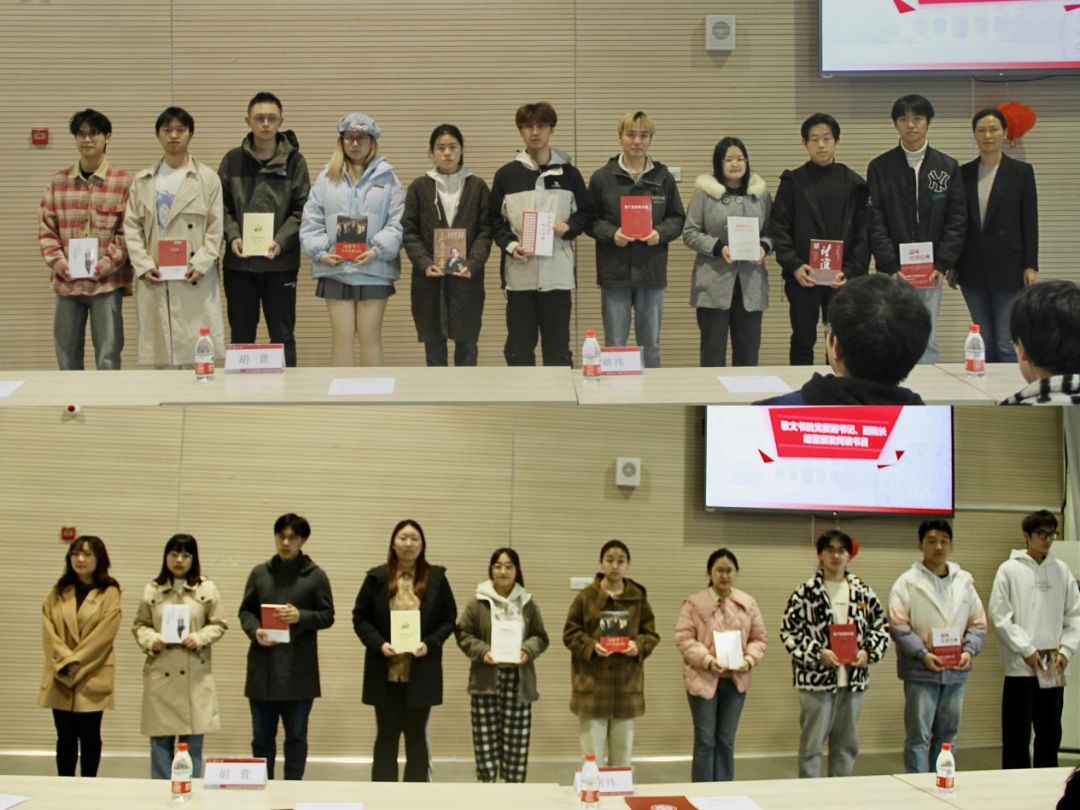 能源学院党委书记沙丹丹,敬文书院党委副书记、副院长胡萱为两院读书会小组组长颁发推荐阅读书目,《平语近人》《望道》《共产党员的力量》等经典著作彰显时代精神,传承红色基因,厚植文化自信。