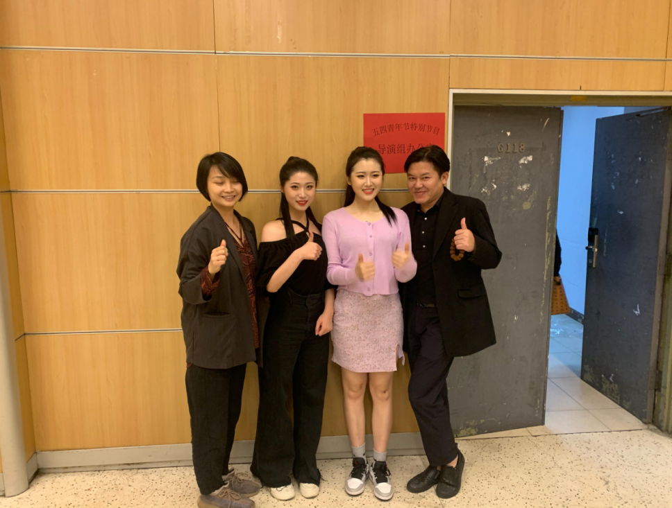 出发去北京前的一周,杨宝仪与田子涵同学经历了层层选拔,并紧锣密鼓地开始排练,每晚都会有4个多小时的集训,出发前夕也排练到将近零点。4月25号早上,团队启程前往北京。26号第一次彩排从上午8点持续到了凌晨3点。在后来的几天的彩排过程中,音乐前前后后改了4遍,舞蹈动作也在不断打磨,28、29号正式录制。