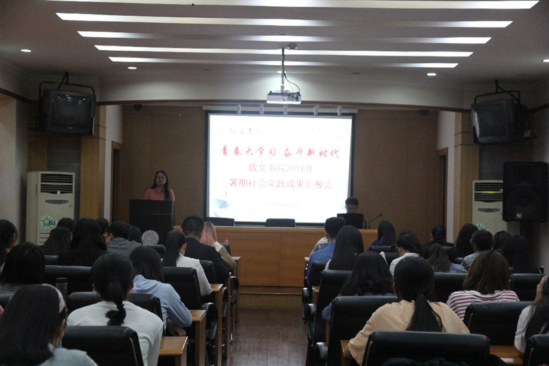 2018年9月26日晚,敬文书院2018年暑期社会实践成果汇报会在校本部红楼115教室顺利进行。苏州大学团委副书记徐美华老师,敬文书院党委副书记、副院长孟玲玲老师,敬文书院团委书记柯征老师,敬文书院2016级、2017级学生代表及2018级全体学生出席了此次汇报会。