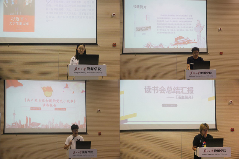 在述职报告后,七个读书小组分别进行了精彩的读书报告,展示小组读书成果,交流读书感悟。通过阅读《习近平与大学生朋友们》、《聚焦星空:潘君骅传》、《共产党员应知的党史小故事》、《追光:薛鸣球传》、《习近平的七年知青岁月》、《浴血荣光》、《为什么是中国》等书籍,学员们共同回顾了中国共产党的百年光辉历程,从中感悟思想伟力,激发了爱党爱国爱苏大的热情。