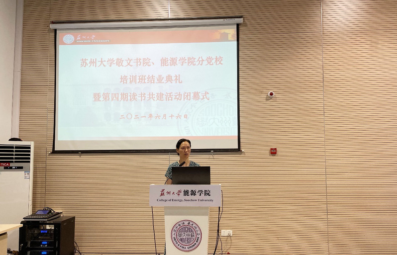 2021年6月16日下午,苏州大学敬文书院、能源学院分党校培训班结业典礼暨第四届读书共建活动闭幕式在能源大楼121报告厅举行。能源学院党委书记沙丹丹、能源学院分党校指导老师孙放、敬文书院分党校指导老师周彤及两院本期分党校培训班学员参加了本次活动。活动由敬文书院分党校学员杨宝仪主持。