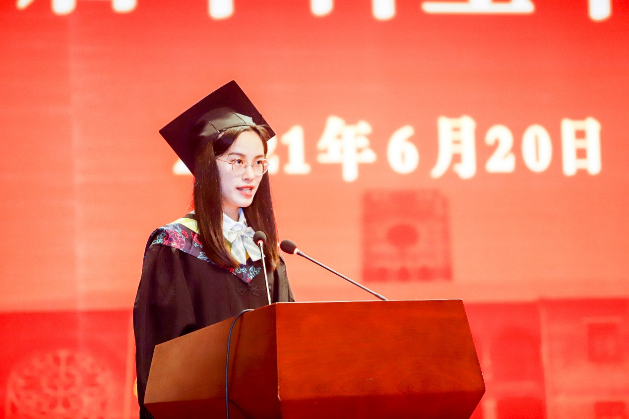 即将赴北京大学深造的计算机科学与技术学院人工智能专业郭静文同学作为毕业生代表发言,她回顾了四年的大学生活,表达了对书院的感恩。四年的书院时光培养了同学们的学术兴趣,也塑造了同学们“自助助人”的使命感,让同学们坚定梦想,扬帆远航。