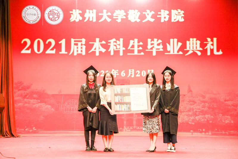 毕业生代表上台向书院赠送了纪念品。这不仅是敬文力量的接力棒,更是敬文精神的薪火相传。