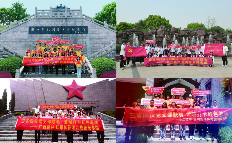 4月17日,一堂特别的党史学习教育沉浸式实境党课在三个省份的四所高校的4个师生党支部中同时进行。苏州大学敬文书院、浙江工商大学艺术设计学院、广西师范大学美术学院、杭州电子科技大学管理学院的师生党员相约同时探访所在城市的红色基地,通过网络连线的方式共享探访学习成果,实现了一次跨越千里的云端打卡联动。